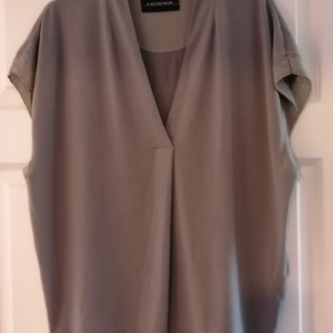 (Virker både for liten/trang og oversized på samme tid, litt usikker på akkurat hvordan det skal sitte, også vanskelig å måle = preferanser). Målebåndet: Armpit to pit ca 76cm (Veldig omtrentlig mål pga shape og mangel på sømmer). Nakke til hem ca 86cm.