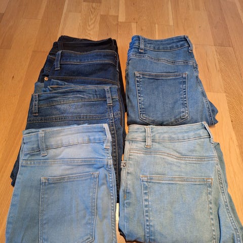 4 skinni jeans ,bikbok,h&m og drdenim den blå er til leggen.