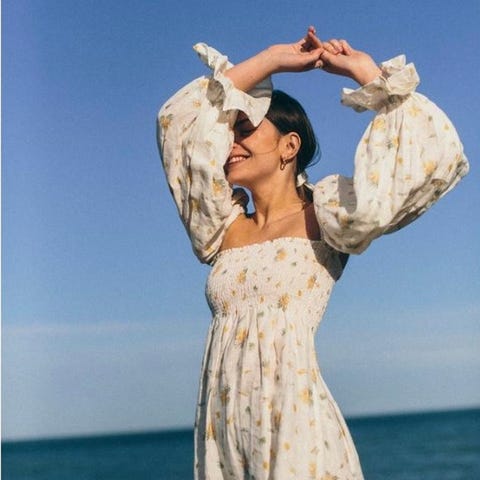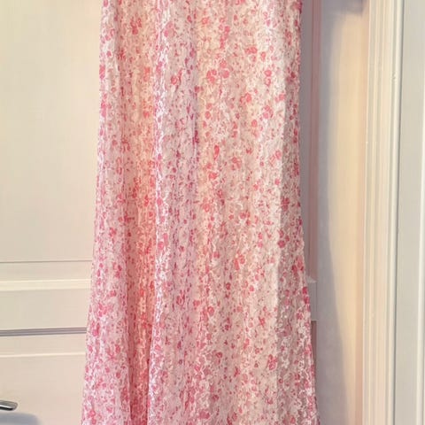 Dotted Georgette Maxi Dress fra ByTimo. Vakker maxikjole med kort ermer. Kjolen har rund hals og noe figurnær passform med lekens skjørt. Kjolen har v-utskjæring på ryggen. Lukkes med skjult glidelås.