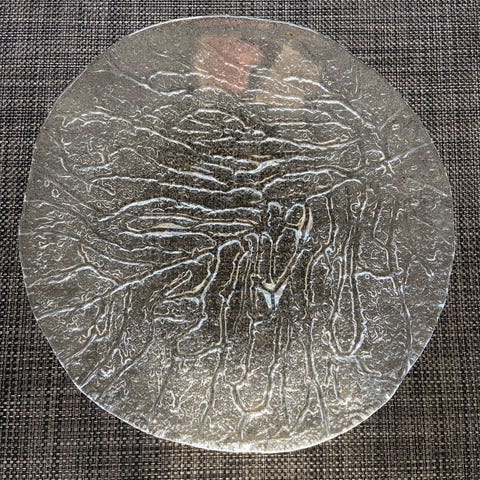 Glassfat på fire bein 26 cm i diam H 6,5
