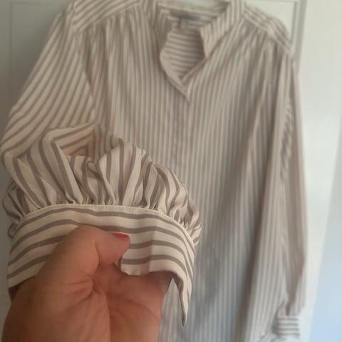 Kul blomstrete skjorte med v hals og oppretthalde armer som kan festes.