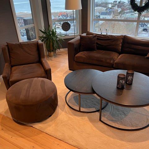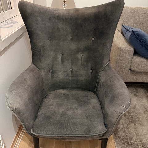 Kjempefine, gode brune velour lenestoler selges. Har 2 stk. 3500 kr pr stk Like fine hjemme i stua som på hytta