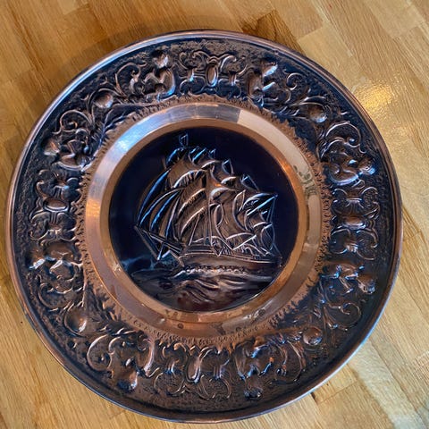 Håndlaget kobber veggdekor seilskip