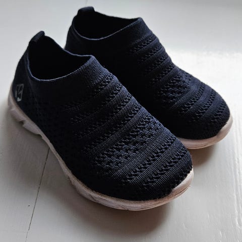 Myk håndheklet inne-sko i bomullsgarn til de minste :-)