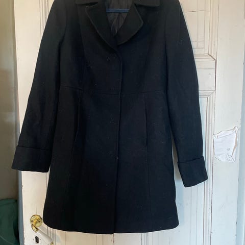 Benetton Annet yttertøy i svart farge, størrelse 38 for kvinner. Yttertøyet har knapper foran og en klassisk krage. Passer til bruk som ytterjakke i kaldere vær. Selges for 400kr. Kjøper betaler frakt.