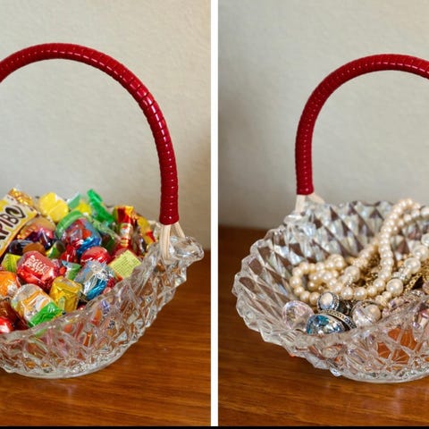 Vintage glass – 2 unike skåler/askebegre i farget glass rød og grønn