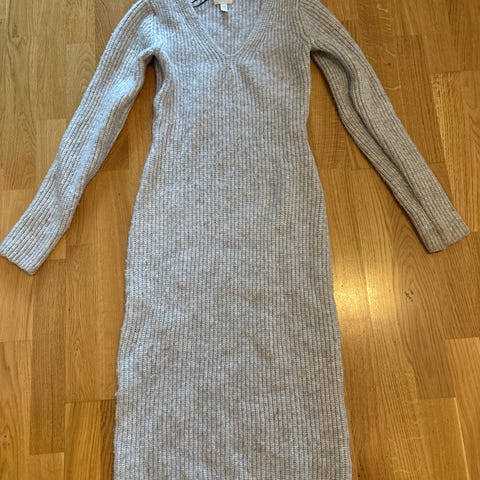 HM Lang, brun strikkekjole med splitt i venstre side. Myk.