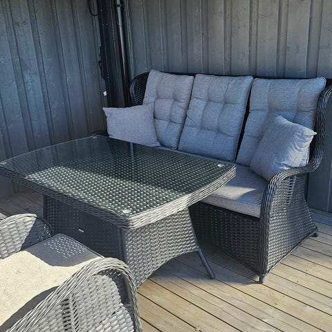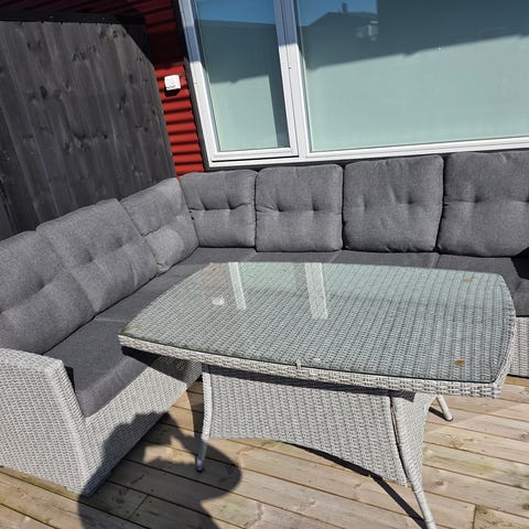 Pent brukt spisegruppe selges for 13.000kr. Kjøpt brukt av oss, men passet dessverre ikke uteområdet vårt. Svært gode utemøbler.