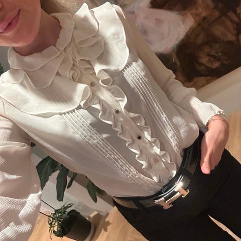 Nydelig V-genser med diskret logo. Kun brukt noen få ganger. Liten splitt i sidene. 55% silke og 45% bomull, tynn kvalitet.