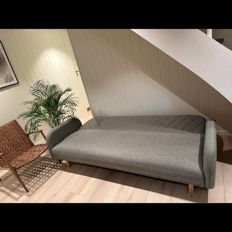 Sofaen funker akkurat som den skal, men når jeg satte den opp så har jeg montert den litt feil, så det mangler å skrues inn en skrue som støtter sovesofa funksjonen, men jeg har ikke hatt bruk for den på den måten så har ikke gjort det selv, men det er en lett fiks for deg som kjøper!
