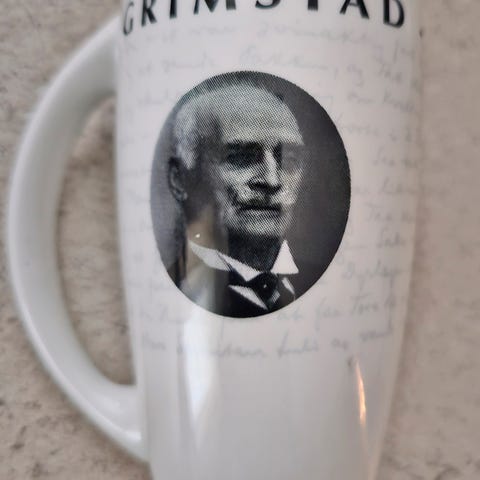 Koppen på bildene er en Figgjo Flint jubileumskopp laget til Kristiansands 350-årsjubileum i 1991, dekorert av Alv Erikstad.