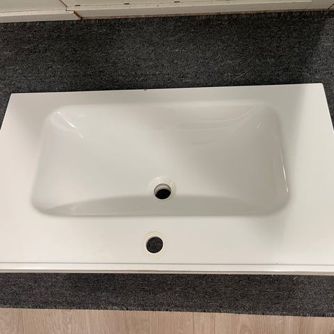 Servant og armatur av merket oras. Skulle gjerne brukt den videre selv, men treverket i møbelet hadde noen skavanker. Selve servanten og armaturet er i svært god stand. 60 cm bredde. 50 cm dybde