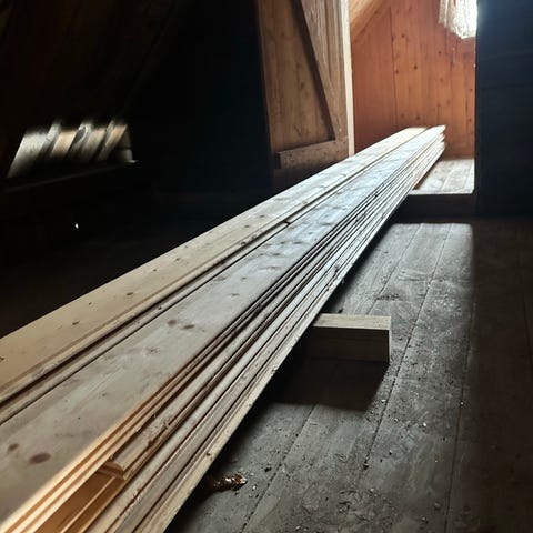 Parketten egner seg godt til gjenbruk i bolig eller hytte. Selges samlet til en gunstig pris.