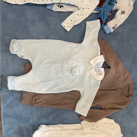 Fin blading av klær til lille prins i størrelse 2-6 måneder.