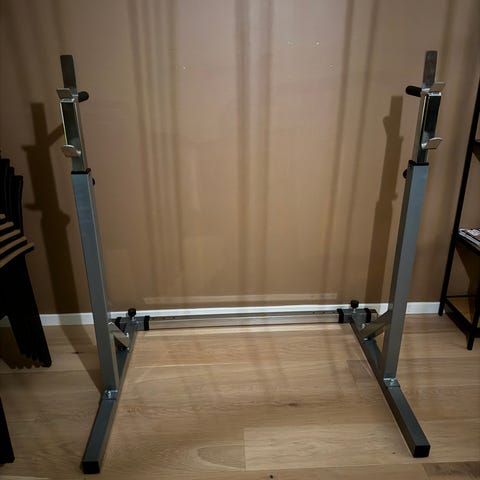 Abilica Vektstativ med tilhørende vektskiver, manualer og EZ curl-stang. Stativet er laget i metall og er egnet for styrketrening. Inkluderer flere vektskiver i ulike størrelser, manualer for håndtrening og en bøyd EZ curl-stang for varierte øvelser.