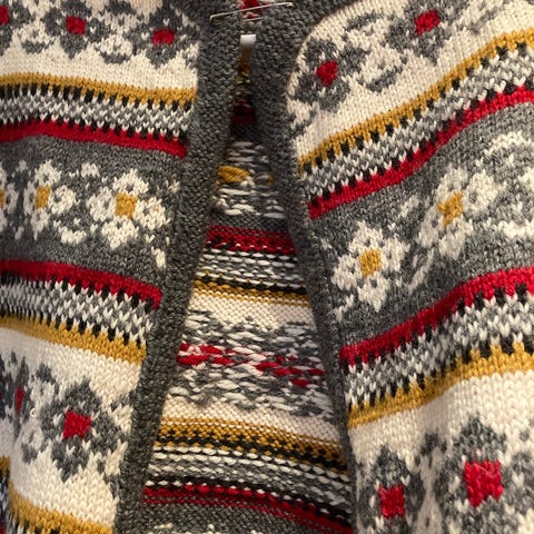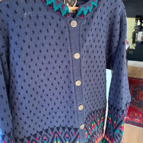 Ralph Lauren cardigan i flerfarget mønster, størrelse XL for dame. Laget i mykt materiale med tradisjonelt design og detaljer som snor med perler. Passer til hverdagsbruk og gir et varmt lag under kaldere dager.