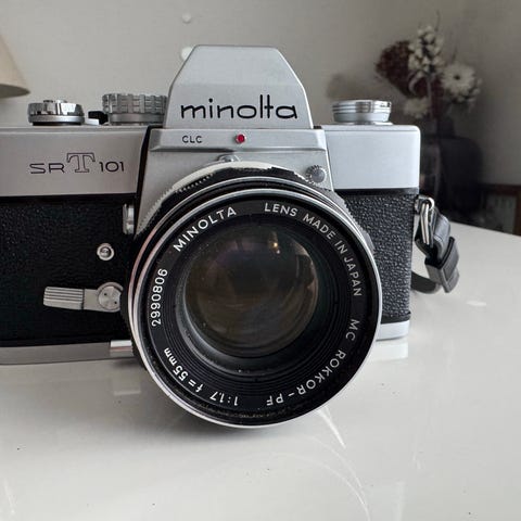 Minolta SR-T 101 Analog Kamera med MC Rokkor-PF 58mm f/1.4 Objektiv
