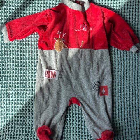 Helt ny myk onepiece i str.68 i bomull med føtter. Lue medfølger.
