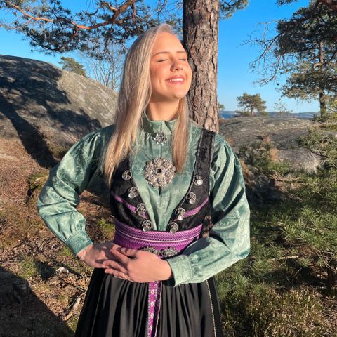 Brukt en gang i str xs/s helt nydelig farge og behagelig å ha på, fin til båre bunad og festdrakt! Kjempe fin skjorte/bluse