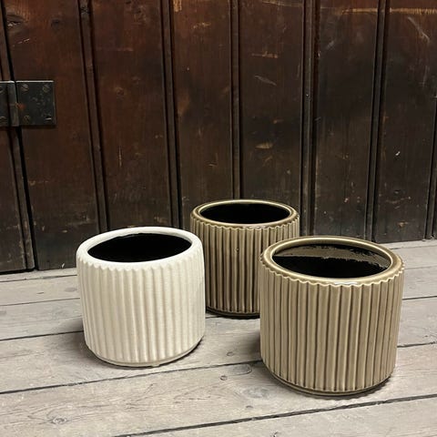 To plantepotter i keramikk med marmormønster.
