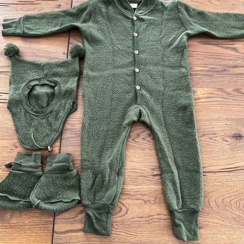 Vinterdress reimatec str 92,litt misfarging som ikkje går av. Parkdress reimatec str 92, god stand. Kivat ullhue str 0. Heimestrikka ullhue. Kr 600