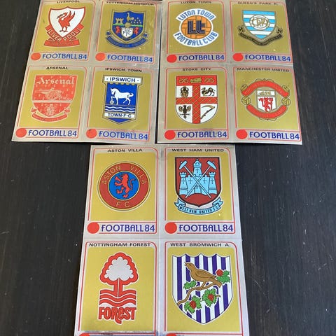 12 klistremerker fra Liverpool, Arsenal, Manchester, Tottenham og andre engelske klubber