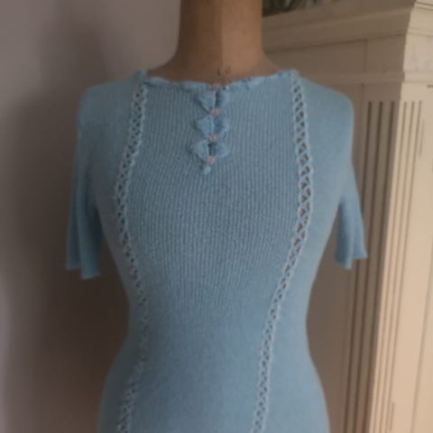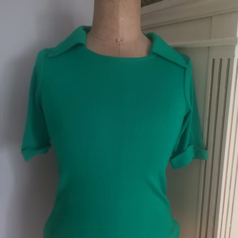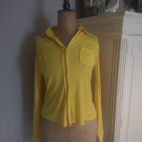 Søt retro skjorte. Det står L men er nok en medium i str. Usikker på materialet men kan tenke at det er noe acryl da det var ofte brukt før.