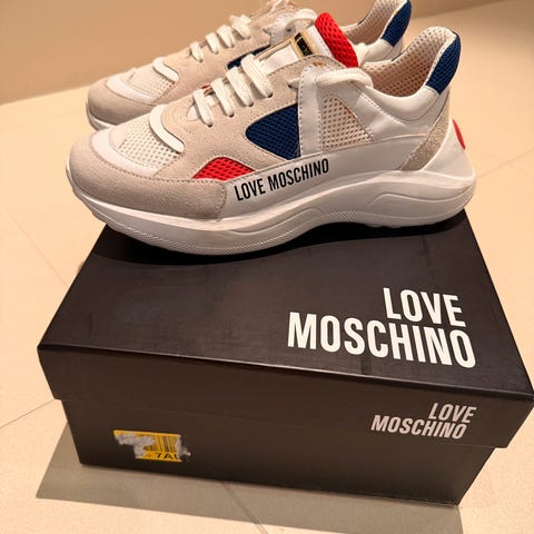 Pent brukte sneakers fra Moschino. Kjøpt på Tise, men blir ikke brukt da de dessverre er litt for store for meg. Litt store i str.