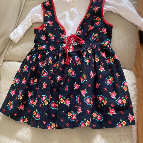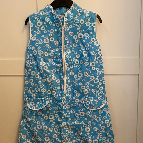 Fin bomullskjole uten flekker/ slitasje.Lengde 70 cm/ brystvidde ca 75 cm.