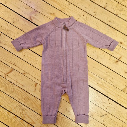 Myk og deilig dress med lue i polyamid/nylon og ullblanding. God og varm. Omslagsdress. Veldig praktisk når man har barn som behandles med pute for hofteleddsdysplasi. Nupper etter bruk, men de kan sikkert fjernes med nuppefjerner. Luen er i str 37/38, dressen 62/68.