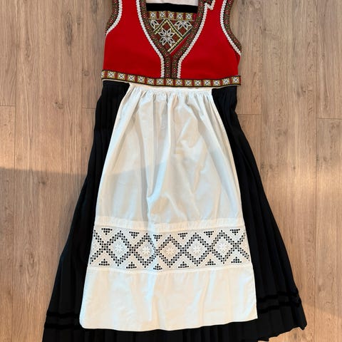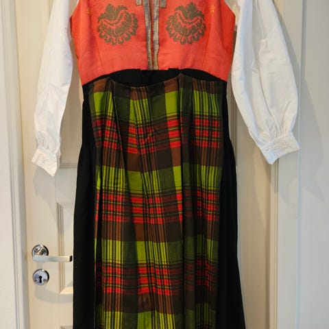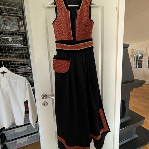 Bunaden har en lomme/veske påsydd skjørtelinningen.