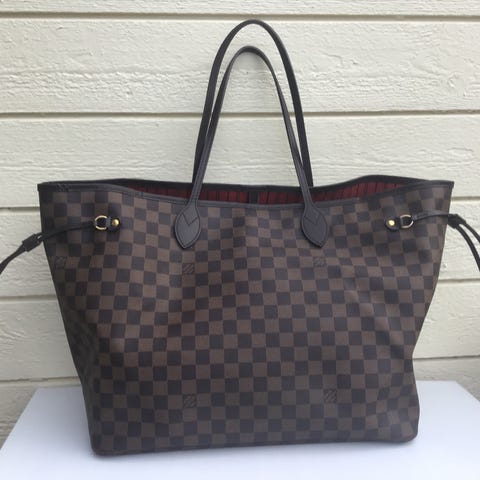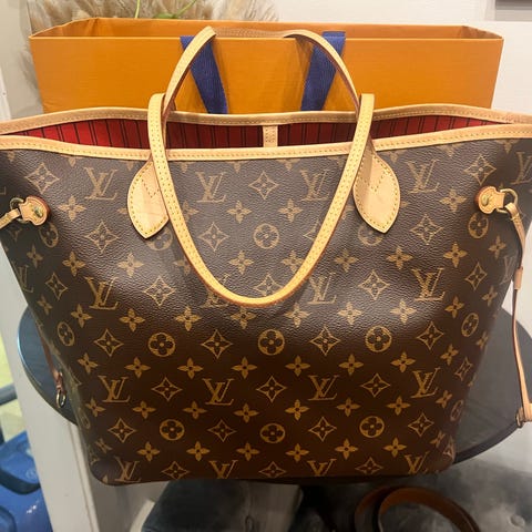 Selger min pent og lite brukt LV Neverfull. Vesken har noen synlige flekker i bunnen, ellers ingen andre bruksmerker på utsiden. Fremstår som pent og lite brukt.