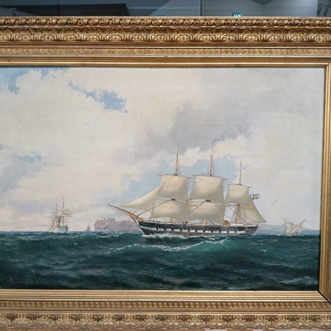 Oljemaleri malt med olje på. Maleriet er et seilskutemotiv malt og signert Johansen 1910.