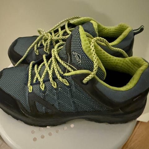 Fine og gode tursko. Lite slitasje på sålene. Litt slitasje på tåspissen formå på skoene, se bilde.