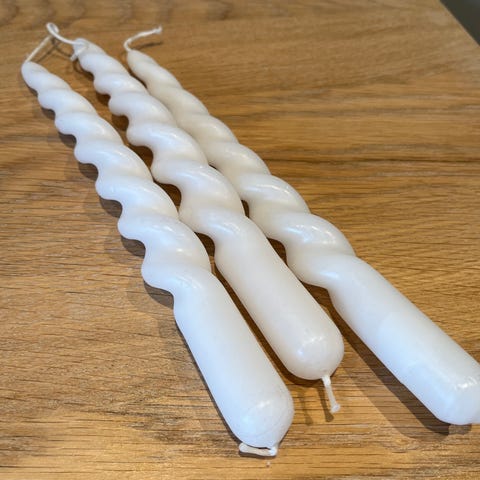 Stearinlys beige og hvit ca 19 cm. Noe små merker på lysene. Se bilder. Kr 10 pr stk. Kr 15 for begge