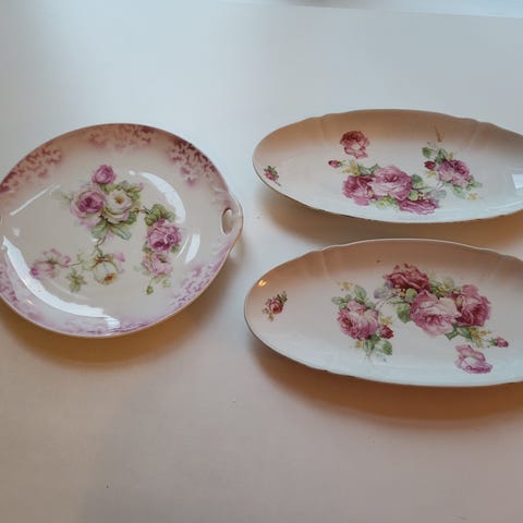 Porsgrund Porselen, antikk smørfat / tallerken i hvit porselen med gull rann