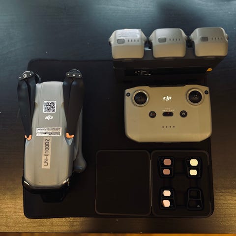 Batterier er ladet med jevne mellomrom men knapt brukt. Fjernkontroll i god stand. Selges fordi drona tok seg en uplanlagt dykkertur....