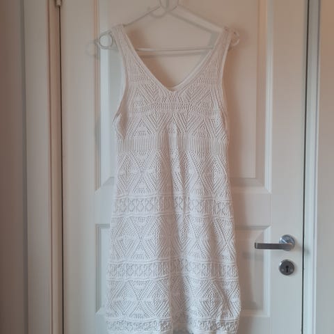 Kjolen er nydelig . Mye finere enn på bildene. Hvitt og lys beige. Flotte detaljer.