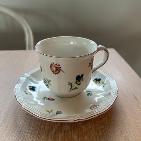 4 stk Petit Fleur kaffekopper m/skål fra Villery & Boch, kr 150,- pr. stk. selges samlet kr. 600,-.