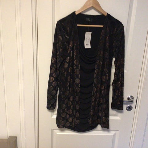 Vakker svart jakke med håndsydde detaljer, perler og dekorasjoner.