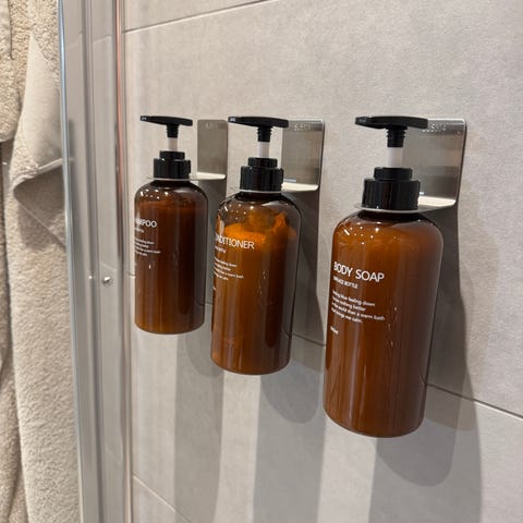 Den ene med teksten “Conditioner”, den andre “Body Wash”.