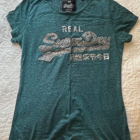 Kul t-skjorte med gullfarget tekst. Nydelig olivengrønn farge. Stretch i stoffet. Helt ny.