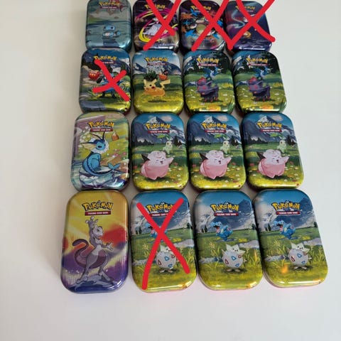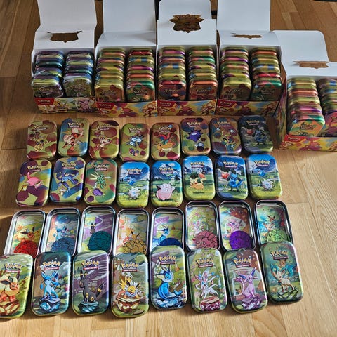 I 151 har 10 forskjellige tin bokser med forskjellige kort og pokemon figurer på lokk. Disse kort kan settes i et større pokemon bilde . Se bilder