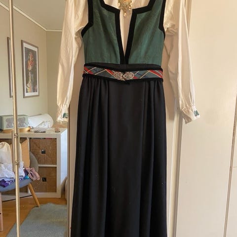 Selger denne nydelige Irene Qvan festdrakten i vakker grønn farge som det finnes veldig få av. Denne er helt unik. Følger med fantasidrakt og jakke. Passer størrelse xs-medium. Lengde 165-175cm. Den passer ca 70-80cm i midjen.