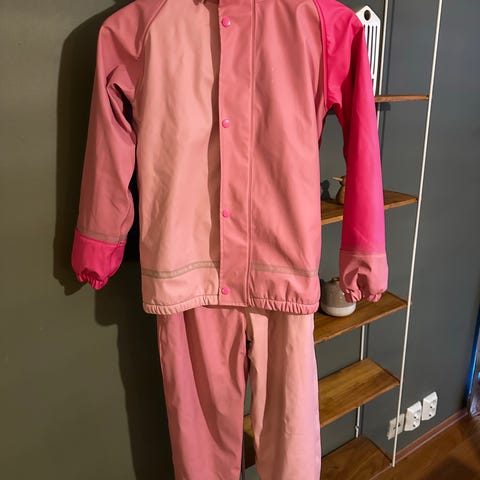 Dette er veldig lite brukt, nesten så det kunne vært under kategorien «som nytt». Dessverre har regnbuksa gått opp i sømmen i skrittet(se bilde), men dette er lappet fint sammen med regntett tape. Ikke noe man legger merke til.