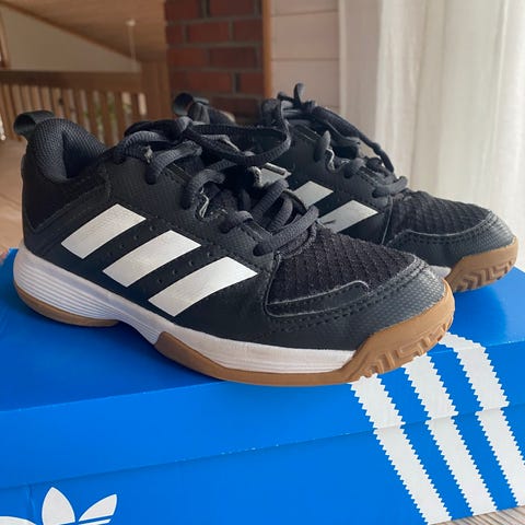 Lette og komfortable innendørssko fra Adidas, perfekte til hallidretter som håndball, innebandy eller trening i gymsal. God demping, slitesterk yttersåle som ikke lager merker, og klassisk Adidas-design i svart med hvite striper.