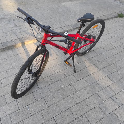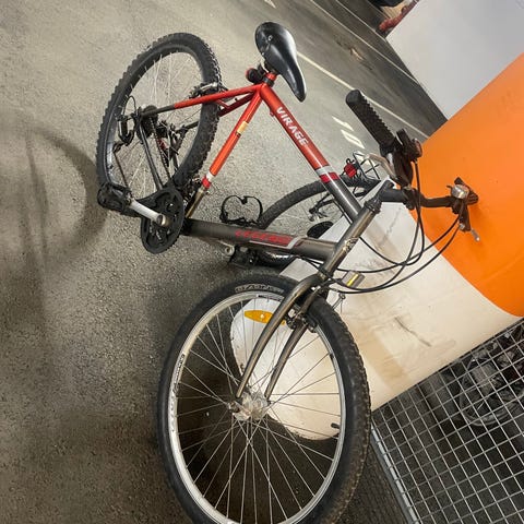 Specialized Jett 24 barnesykkel med aluminiumsramme i rød farge. Sykkelen har 24 tommers hjul, frontdemper satt på, og girskifter på styret. Egnet for barn og unge, designet for terrengsykling og fritidsbruk.
