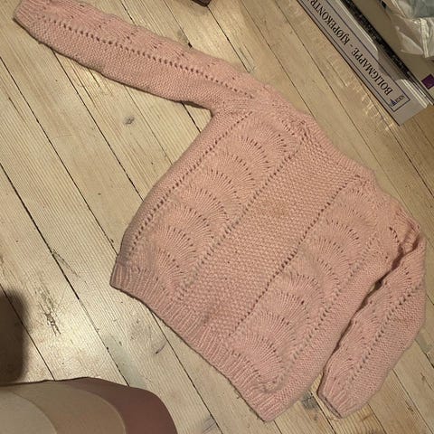 Klompelompe sin Glamgenser, strikket i tynn merinoull og tynn silk mohair + effekt tråd i sølv.