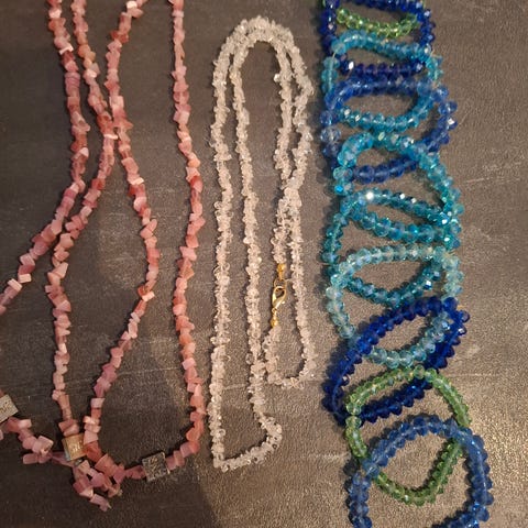 De to kjedene med steiner kjøpte jeg i Peru. 80kr pr stk