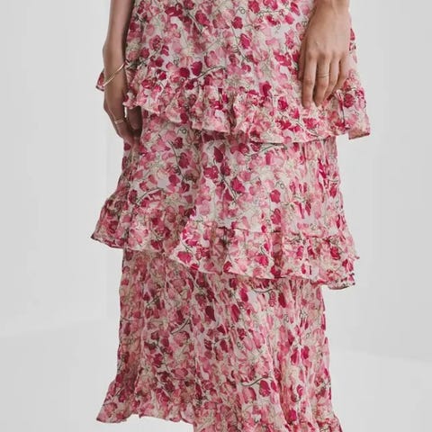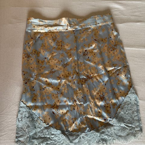 Rosa Skjørt med Blonder / «Lace Ruffle Skirt" fra bytimo er sydd i fint, delikat nylonstoff, dekorert med et elegant blomstermønster. Den har glidelås i siden.